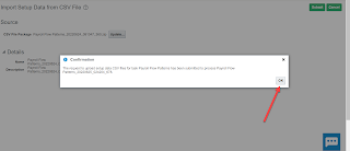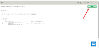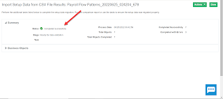 - To check the Import status, again click on Payroll Flow Patterns actions, click Import from CSV File, click Importing setup data.
