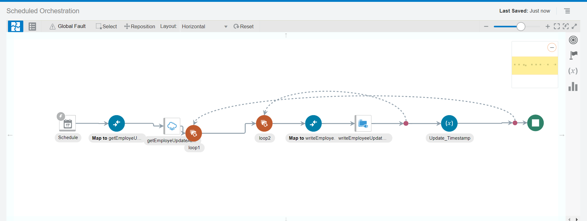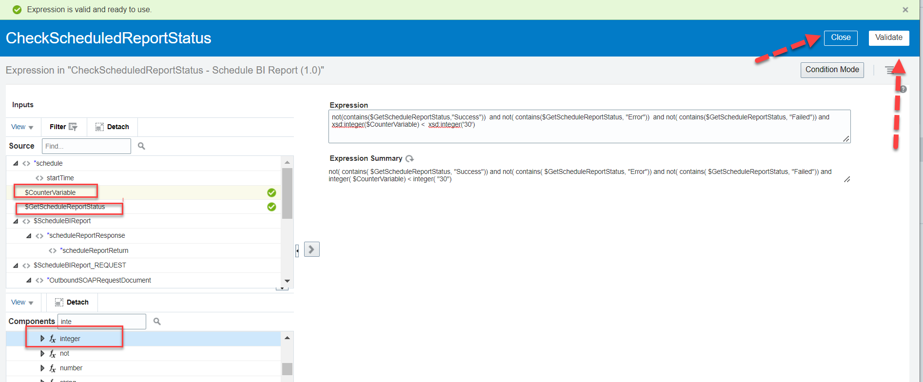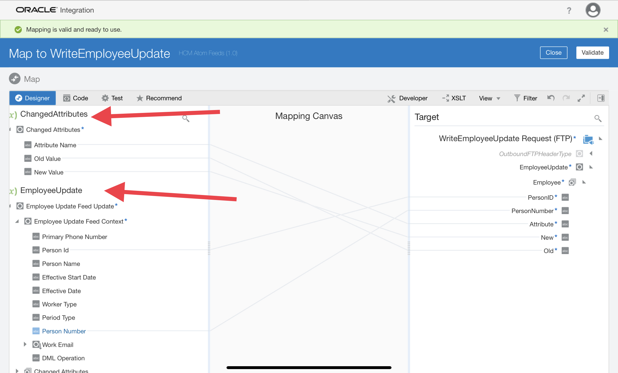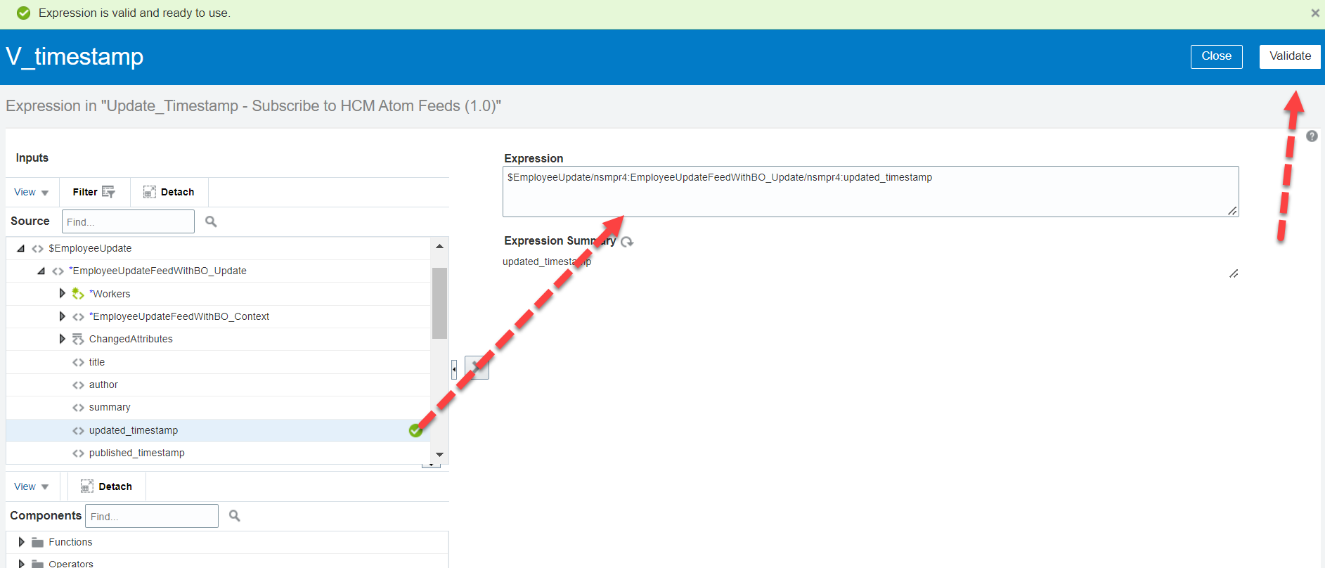 - Drag and drop updated timestamp element from then employee update response (as shown in below image). Click validate and close.