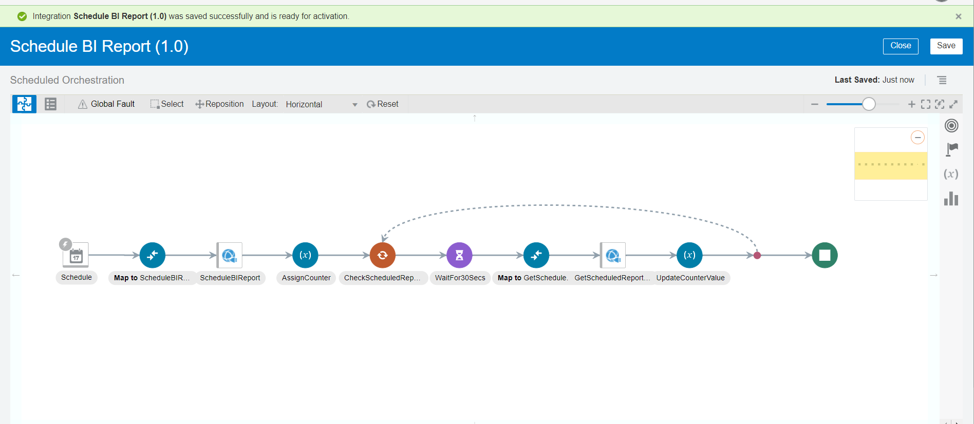 - Integration development completed. Click Save and Close the window.