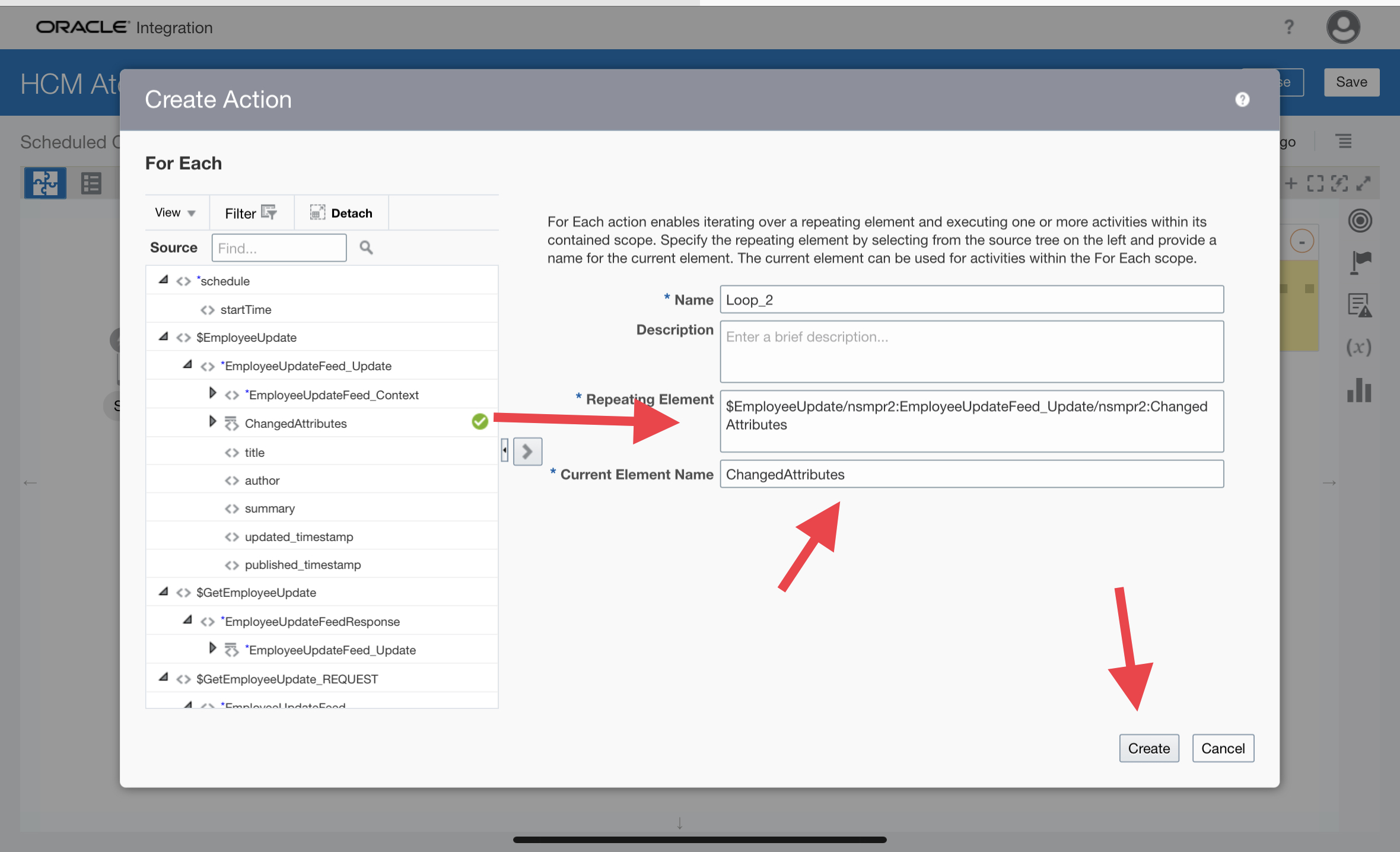 Step 3 : Now to read the Response of the ‘Employee Update‘ Atom Feed we need to configure two For Each action.