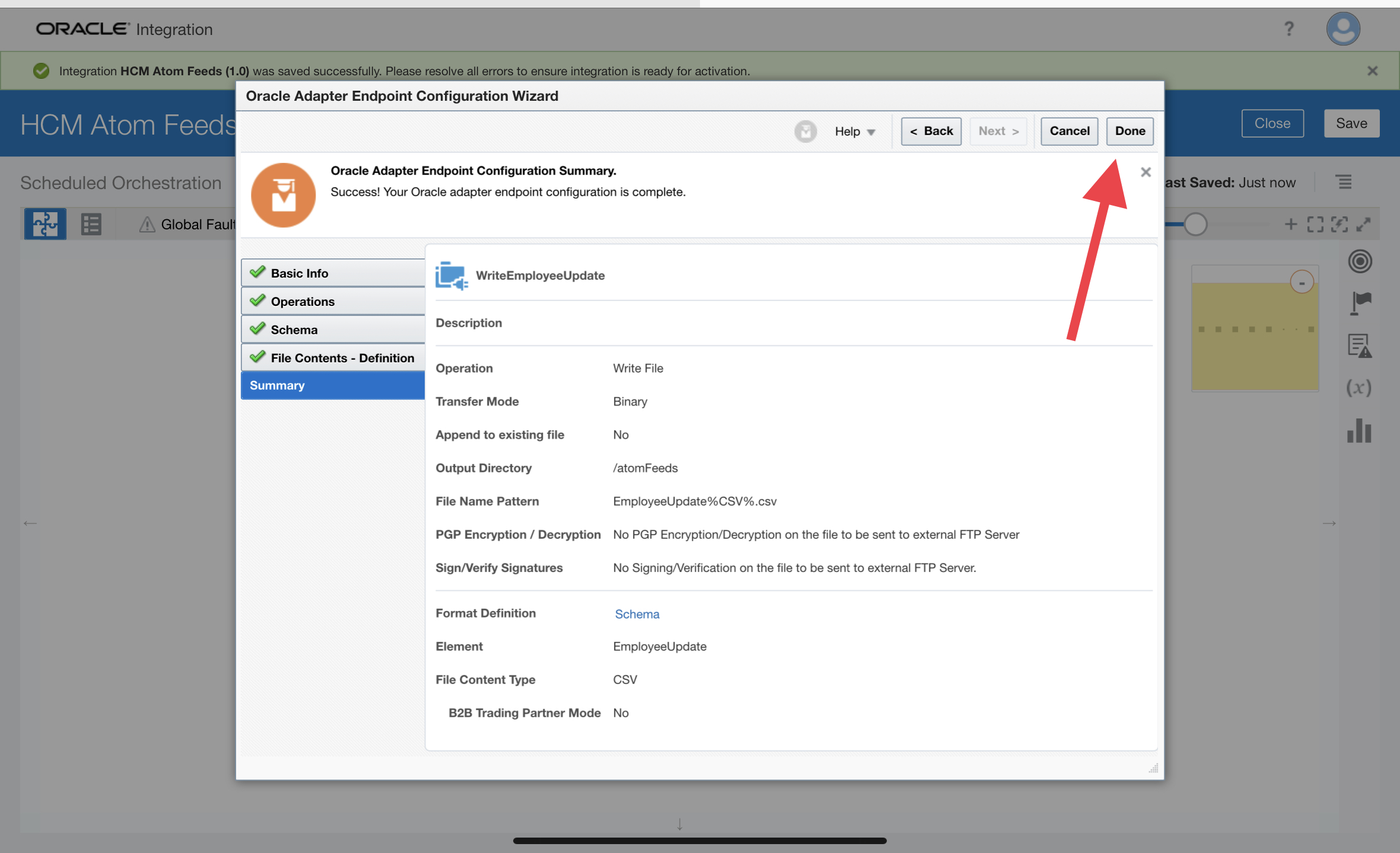 - HCM endpoint configuration is completed. Click Done.
