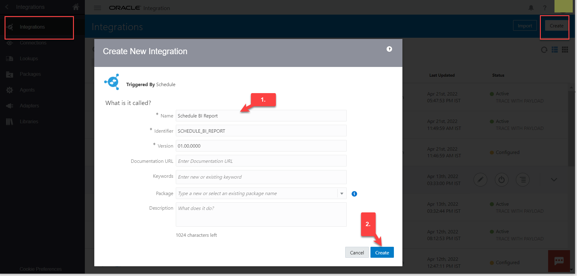 Step 1: Create one Schedule Integration.